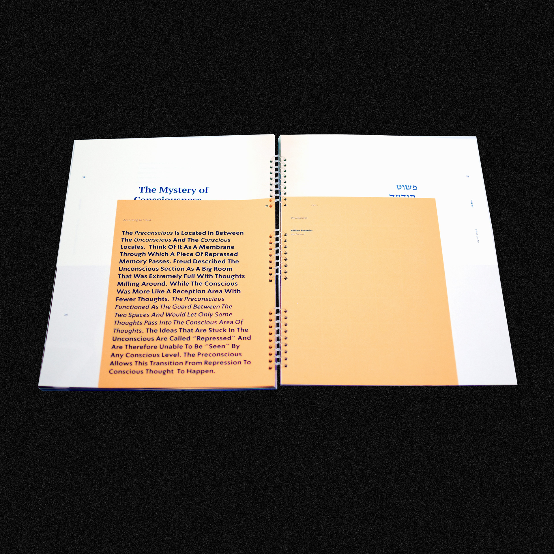 A book that is all inspired by the layers of our minds - The consciousness, the unconsciousness and the preconsciousness which is our memories. Shenkar, Year 3.